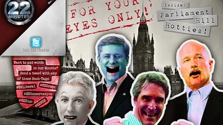 In partnership with the CBC and Halifax Film, Zeros 2 Heroes' latest multi-media content offering comes in the form of an interactive "Briefing Book" for the TV series This Hour has 22 Minutes. With humorous illustrations, saucy Easter eggs, and a compelling tactile interface punctuating the irreverent copy created by show writers, the book provides a timely compliment to the series. Fans of the show can now get their satire-hit between episodes — look for new weekly offerings throughout the run of the show at:http://www.cbc.ca/22minutes/book/main.html
